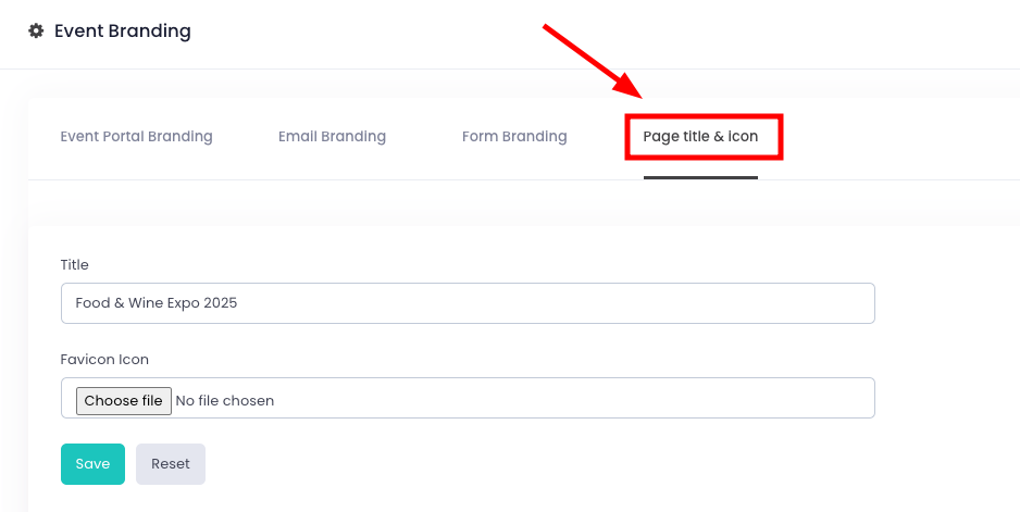 In addition to portal branding, you can personalise your page title and favicon, which help improve brand recognition and event identity across browsers.