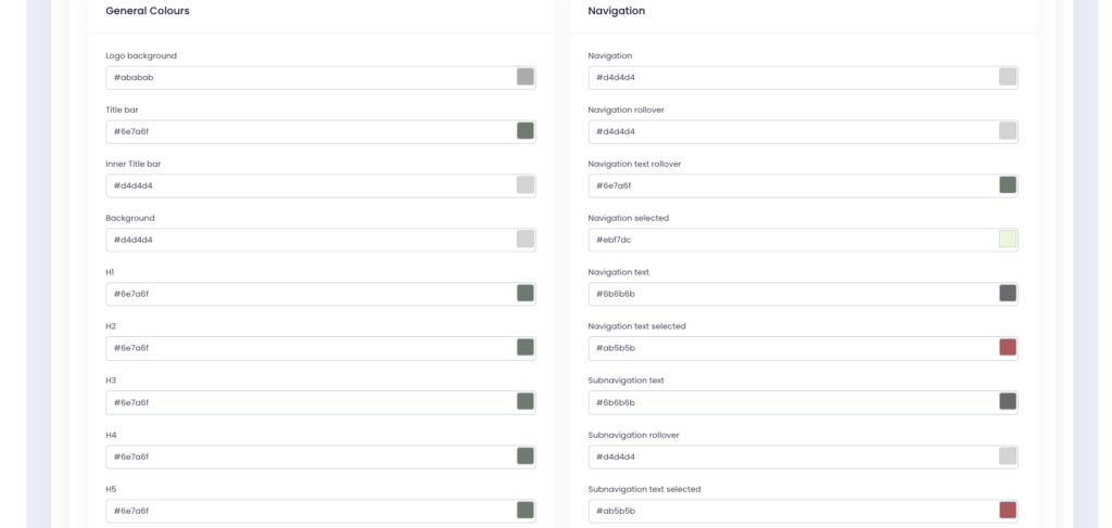 • Themes: Adjust the overall colour scheme, including background and navigation.