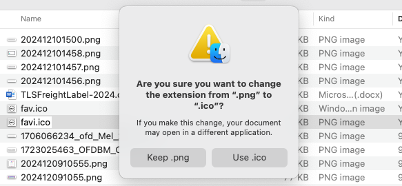• Example: Save your icon as favicon.png, then rename it to favicon.ico.