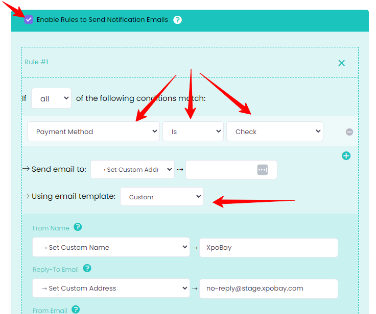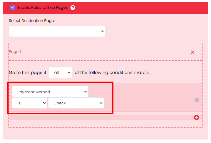A logic rule will be displayed. Adjust the rule and select the Payment Method field as the rule condition, like this: