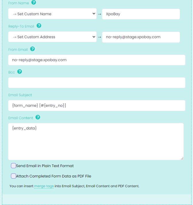Save the rule by clicking the Save Settings button and test your form. The resulting email should be like this: