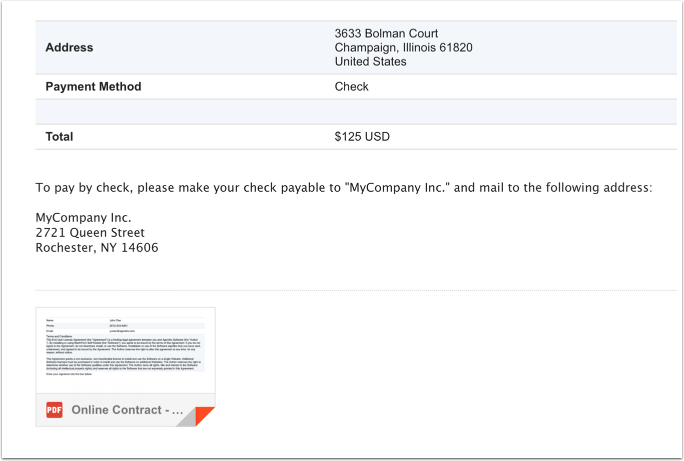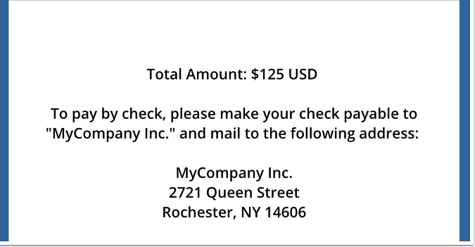 To pay by check, please make your check payable to "MyCompany Inc." and mail to the following address: