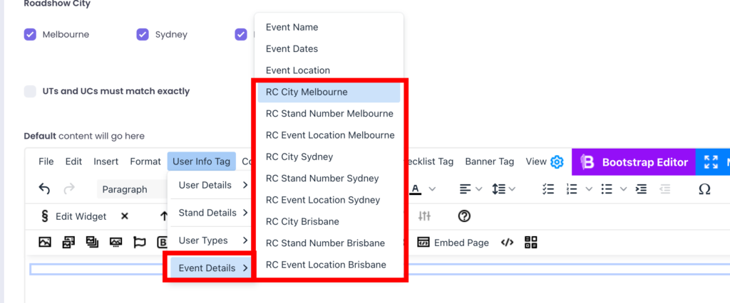 By following these steps, you can efficiently create personalised and city-specific content for your Roadshow Events. For more details, visit our Understanding Dynamic Tags article or contact our support team.