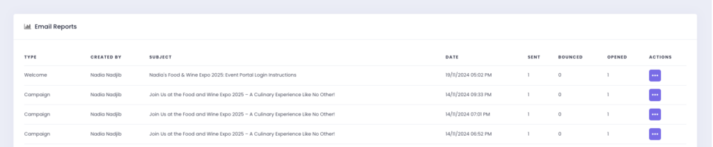 The Reports feature under Emails and Reports provides valuable insights into your email campaigns and communications. Here’s what you can track: