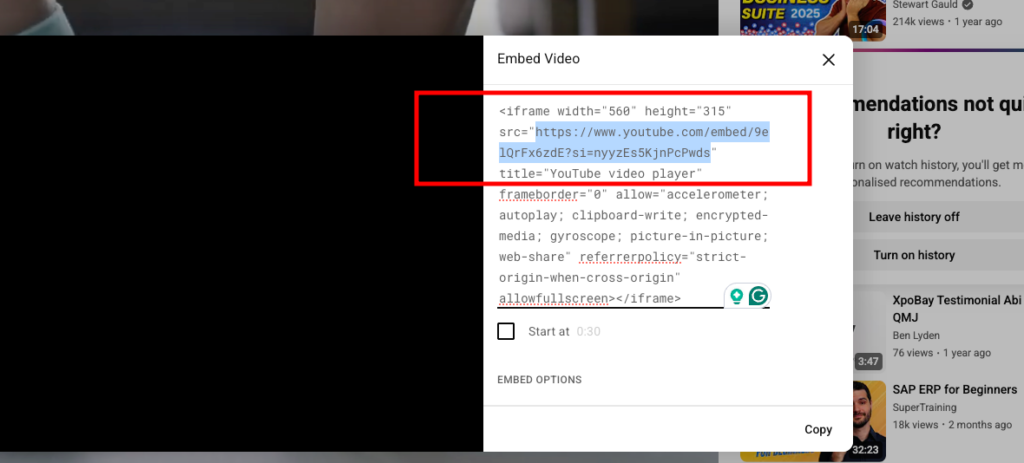 To embed a YouTube video, you need to use the Embed option provided by YouTube.