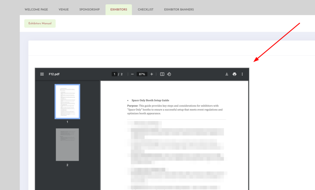 Your exhibitors or sponsors will be able to view the file on your event pages as shown below: