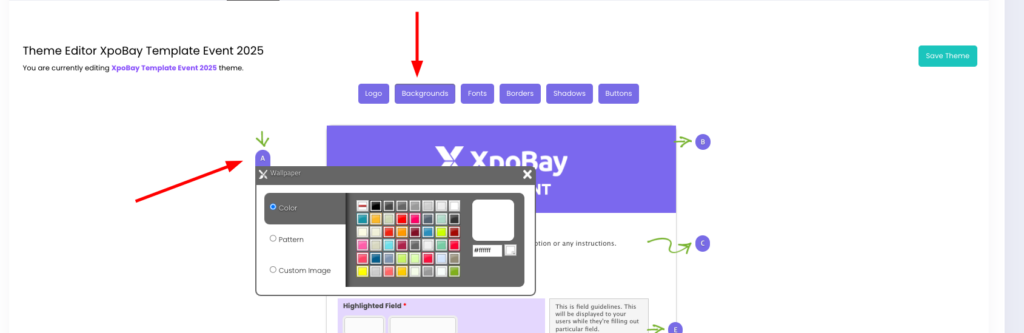 To maintain a professional event appearance, it’s essential to align your forms with your event’s branding. Here’s how you can customise banners, fonts, and background colours for your forms and email templates.