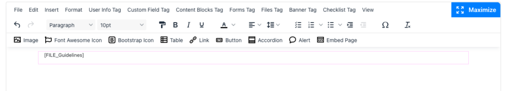 • If a file is labelled Guidelines you can display it on any page using the tag: [FILE_Guidelines].