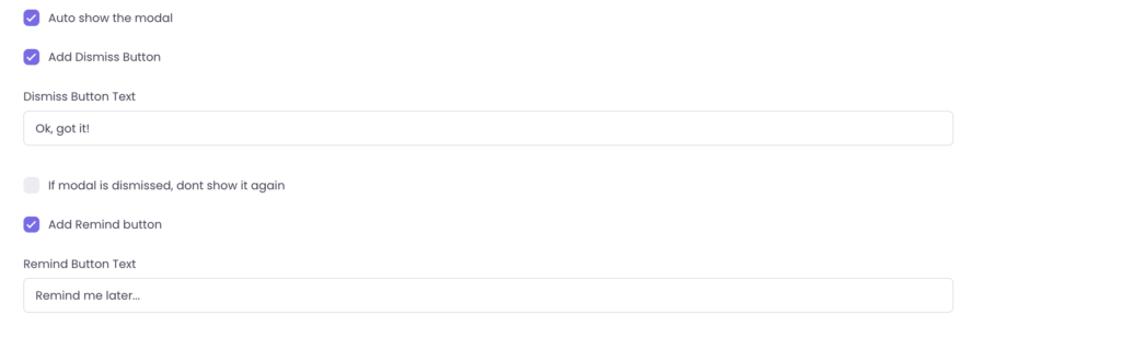 Use User Types and User Categories to control who sees the modal. This ensures users only view content relevant to their role or participation.