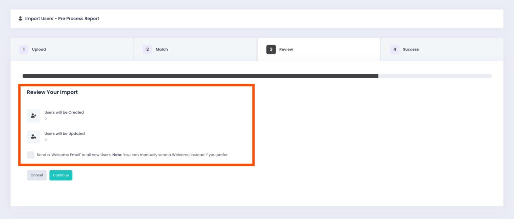 -At this stage, you can choose to send a welcome email to the new users immediately or decide to send it manually later from the User List.