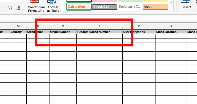 • The existing Stand Number or Unique ID must be present in the corresponding column.