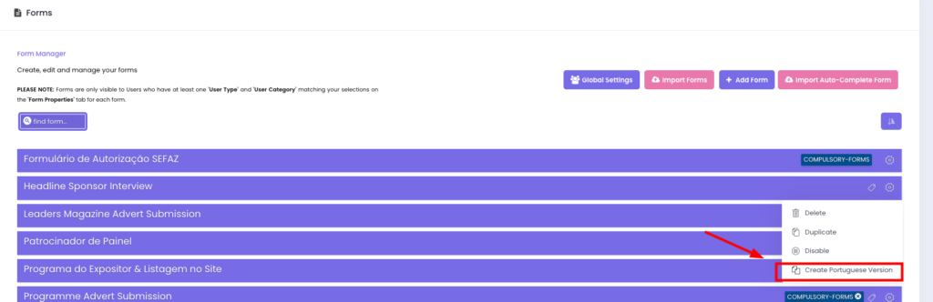 For this reason, it is recommended to only create the language version once the English form structure is fully completed.