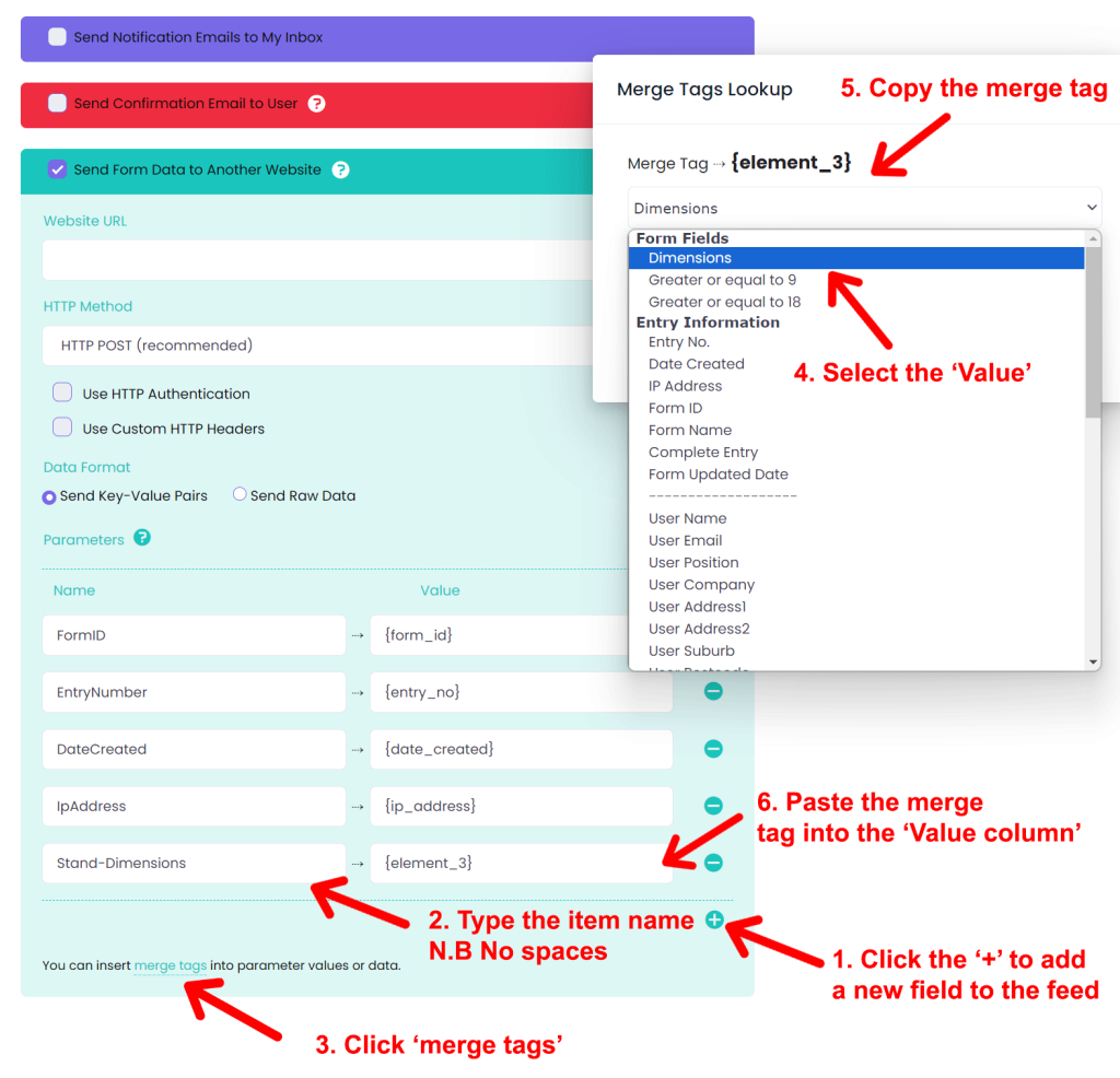 Enable the “Send Form Data to Another Website” option.