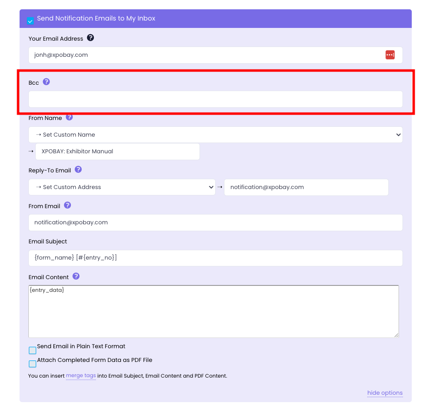 • Enable the option to “Send Notification Emails to My Inbox.”