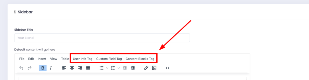 Dynamic tags enable the Sidebar to automatically display specific user details, allowing you to control exactly what information appears.