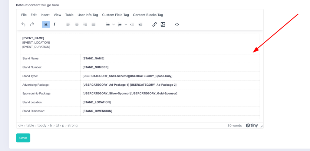 • Content Block Tags: Add content blocks you’ve created for consistent formatting.